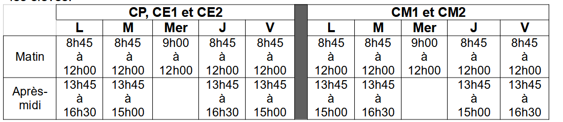 La durée de la semaine scolaire est fixée à vingt-quatre heures d’enseignement scolaire pour tous les élèves.